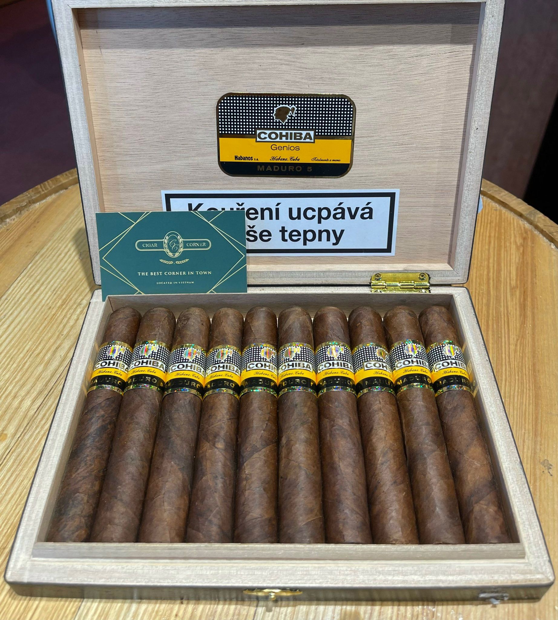 Là một trong những line Cigar được ưa chuộng nhất thế giới, Cohiba Maduro 5 Genios ngày càng chiếm được nhiều tình cảm của người tiêu dùng. Với lớp lá cuốn được ủ trong 5 năm, Maduro 5 Genios mang lại hương vị đậm đà lôi cuốn đén khó tả, đây là một line Cigar thanh lịch, mượt mà và sang trọng. Nếu bạn là một fan hâm mộ vòng ring lớn thì đây là một sản phẩm Cigar không thể bỏ qua. Với hương vị chủ đạo là gỗ tuyết tùng cùng hương vani ngọt ngào và mùi thơm của cacao rang sẽ kích thích các giác quan của bạn tới đỉnh điểm, còn gì thú vị hơn khi ngồi nhâm nhi một điếu Maduro 5 Genios cùng người thân bên ly cafe thơm nồng.