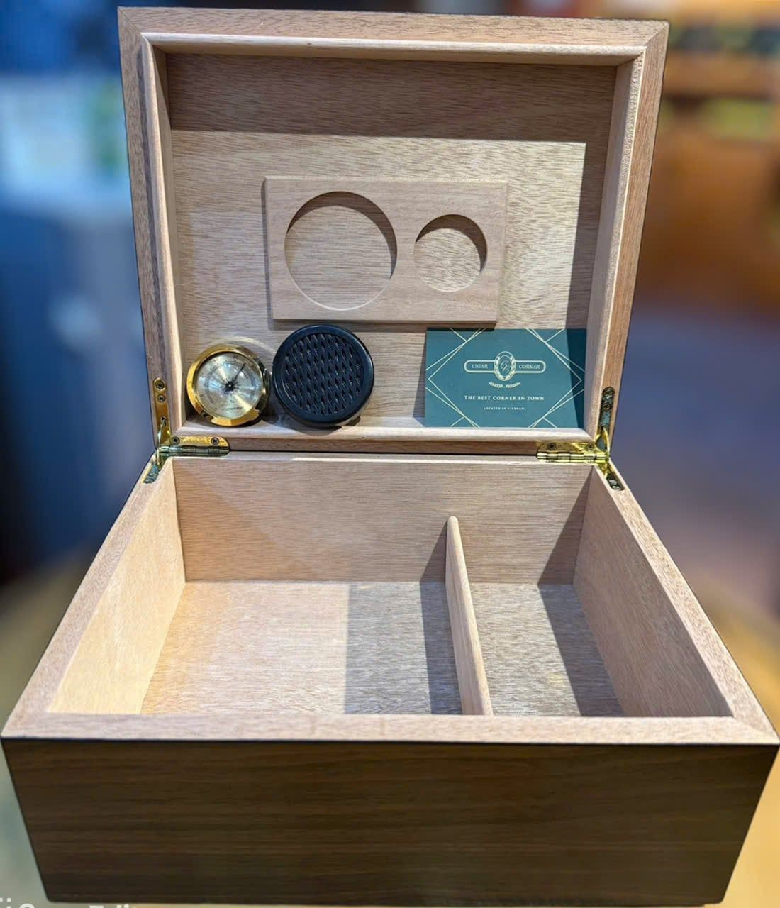 Sở hữu thiết kế sang trọng với vân gỗ tự nhiên Humidor CD-030 là sản phẩm cao cấp với kích thước nhỏ, với sức chứa 20-30 điếu Cigar của bạn trong điều kiện tốt nhất. Bên trong là chiếc đồng hồ đo độ ẩm cùng khay đựng nước cất sẽ giúp bạn yên tâm hơn về sản phẩm. Sản phẩm được hoàn thiện tinh tế, hiện đại mang lại sự kết hợp hài hoà giữa sản phẩm và không gian của bạn