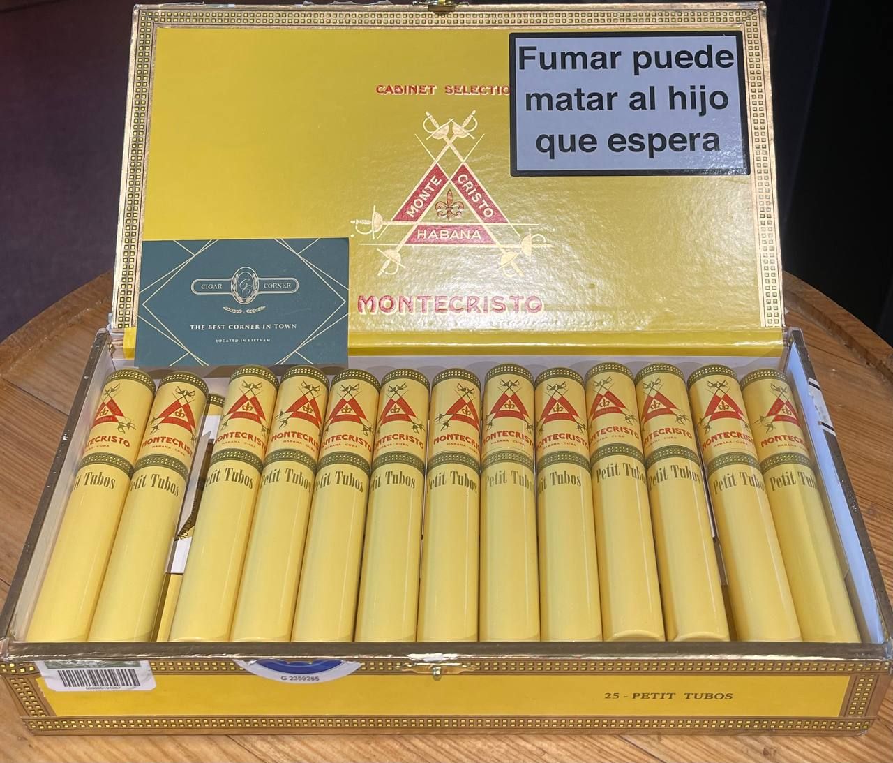 Montecristo Petit Tubos là loại cigar hoàn hảo để thưởng thức trong thế giới bận rộn ngày nay. Đủ nhỏ để dễ dàng mang theo và thời gian hút không quá dài, nhưng vẫn đủ kích thước để tận hưởng trọn vẹn tất cả những gì tuyệt vời về Montecristo. Mỗi điếu được đặt trong ống nhôm tiện lợi, đầy phong cách, điếu cigar này là phải có cho bất kỳ bộ sưu tập của người yêu cigar nào.